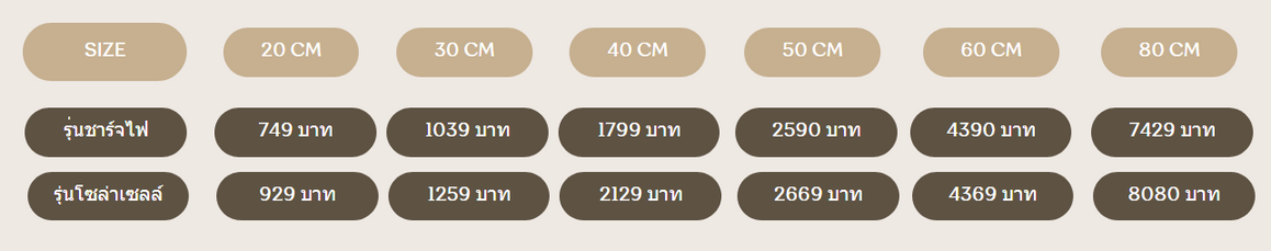 ขนาดของโคมไฟ